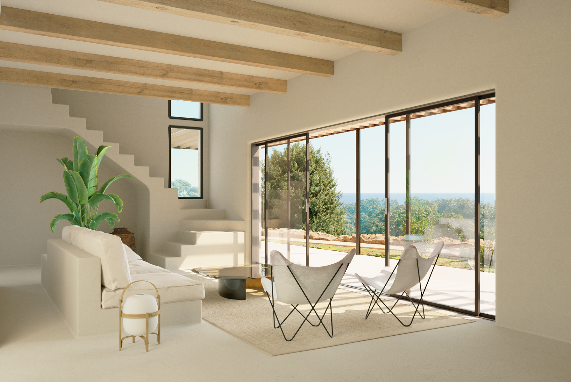 Imagine your own Ibizan sanctuary: a spectacular villa spread over three levels, designed to capture the essence of the island and offer a sophisticated yet relaxed lifestyle. In the basement, you could create a multifunctional space, ideal for a games room, private gym, or even a home theather. On the ground floor, an open plan layout would harmoniously integrate the kitchen, dining room and living room, flowing onto a spacious outside terrace with outdoor dining area and a stunning pool, perfect for enjoying the warm Mediterranean sun. The first floor would house the main bedrooms, each with its own private bathroom and terrace with panoramic sea views, creating intimate spaces to relax and unwind.